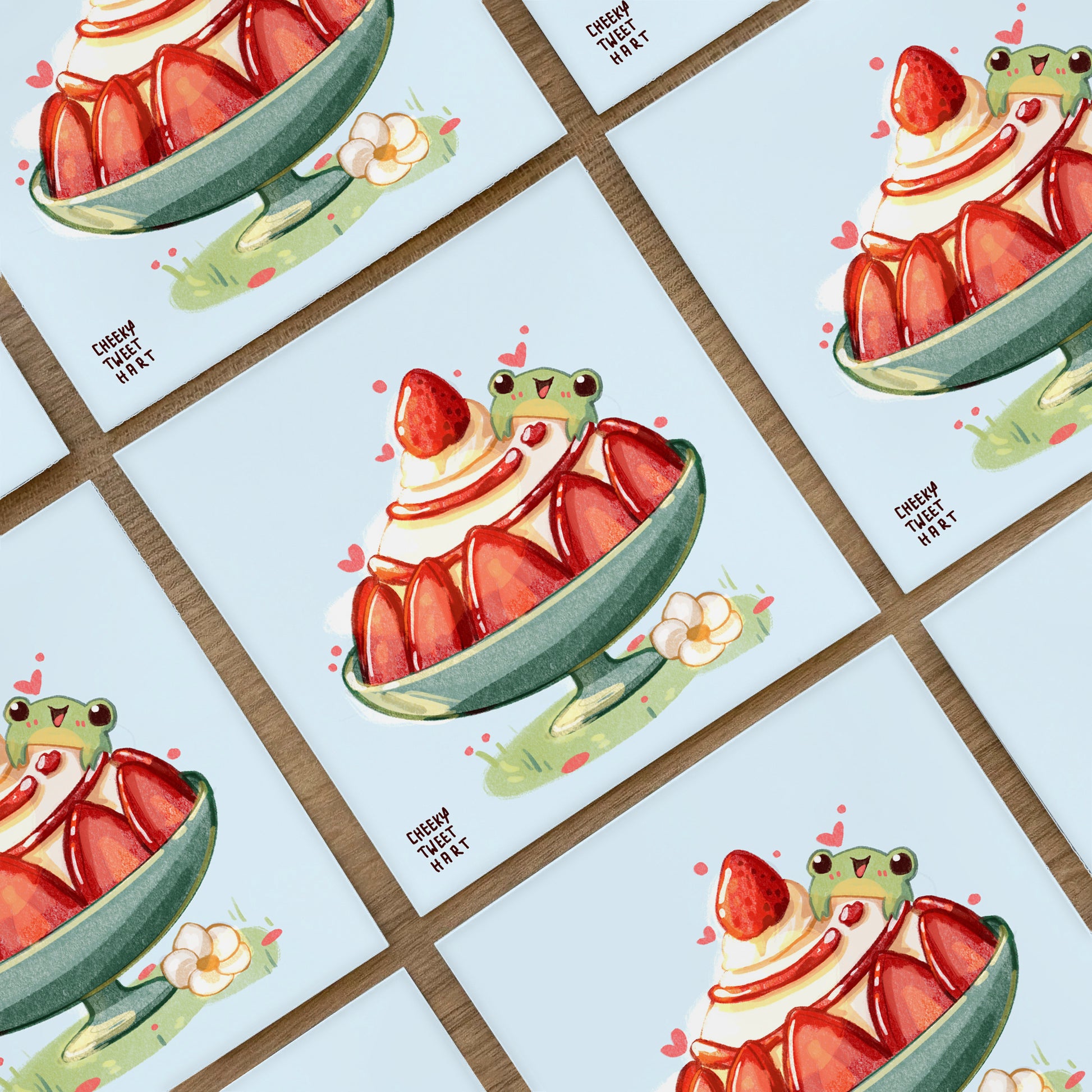 Strawberry Bingsu Ribbert Frog Art Prints #AP111
